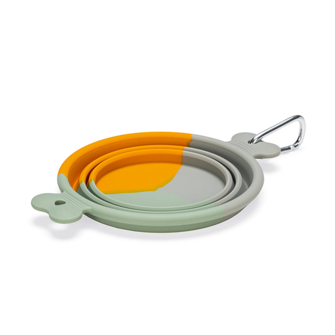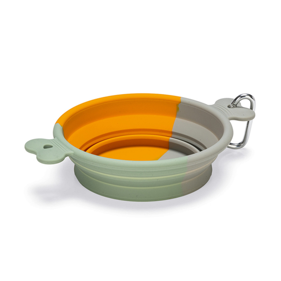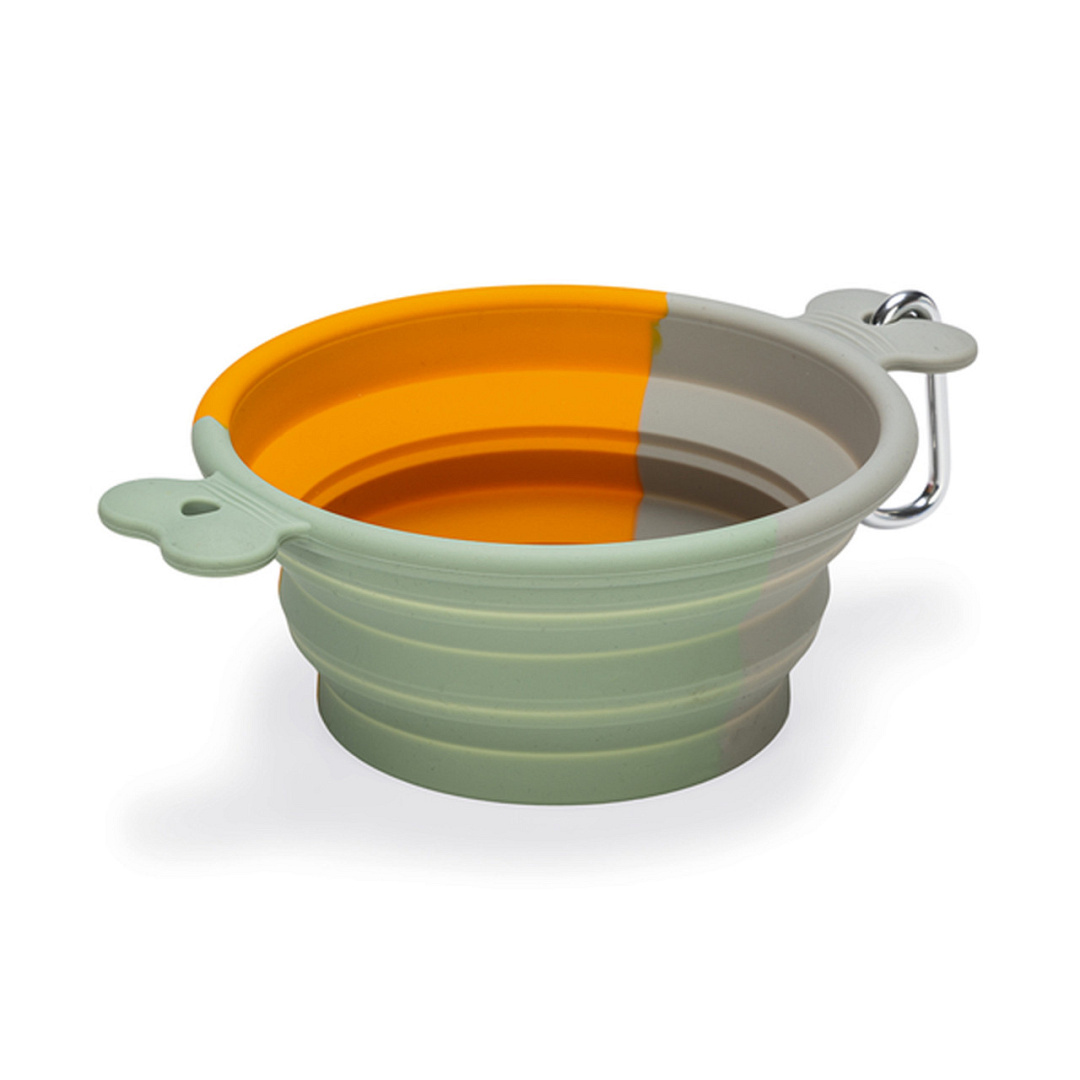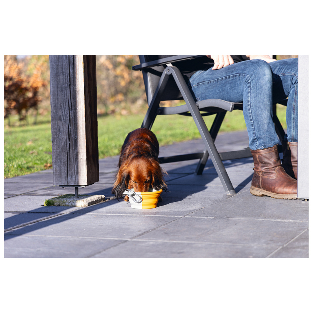 Inklapbare voer- of drinkbak voor onderweg. Met karabijnhaak voor makkelijk meenemen.