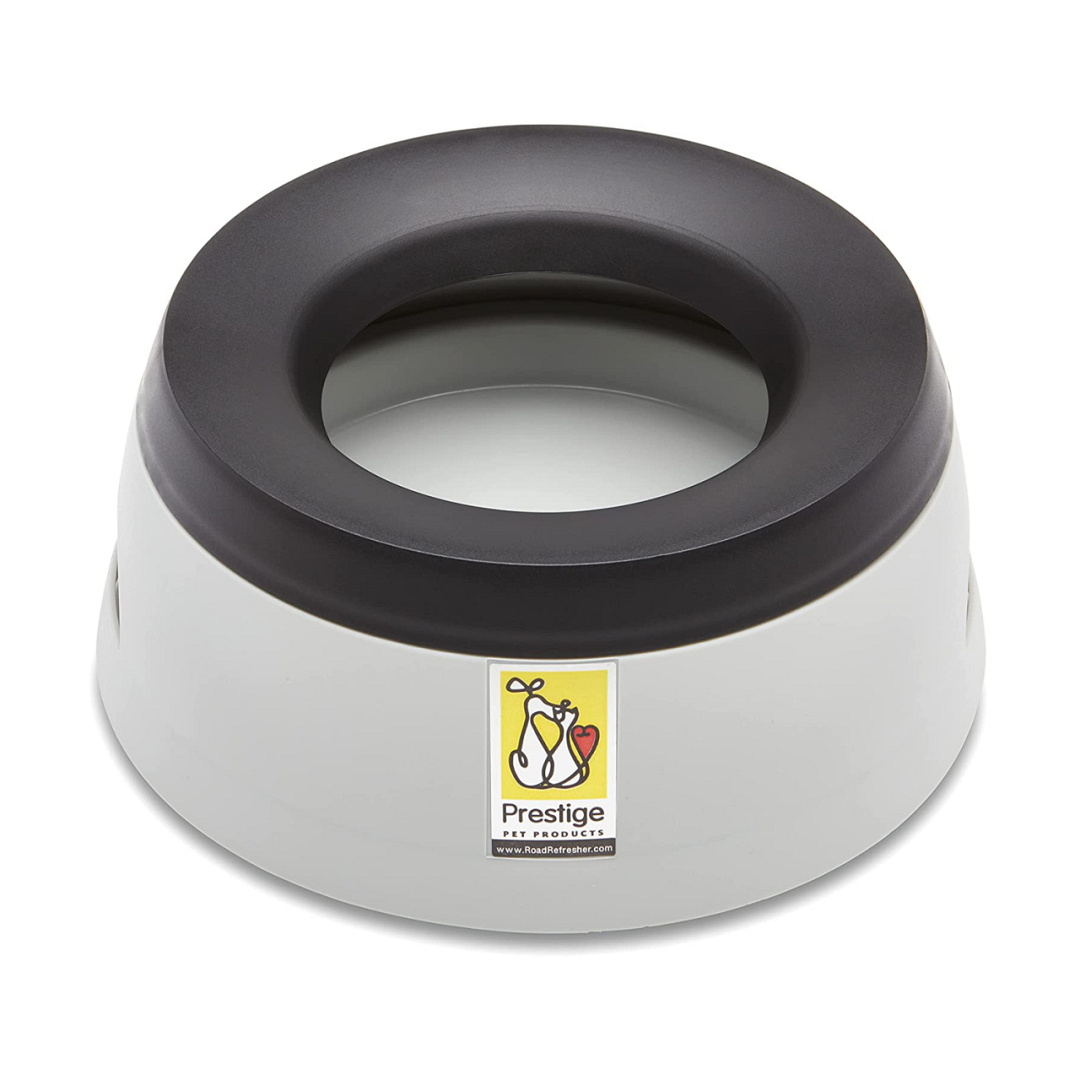 De Road Refresher is dé ideale drinkbak voor in huis, de bench, caravan, auto of voor op de boot! Deze drinkbak heeft een dubbele bodem (vlotter) met openingen, die ervoor zorgen dat er maar een klein laagje water op ligt. De hond drinkt hierdoor veel rustiger en minder gulzig. Een extra rand in combinatie met de vlotter voorkomt onnodig geknoei met water tijdens het drinken, bij een onverwachtse beweging van buitenaf of voorkomt het dat de oren van de hond in het water hangen.