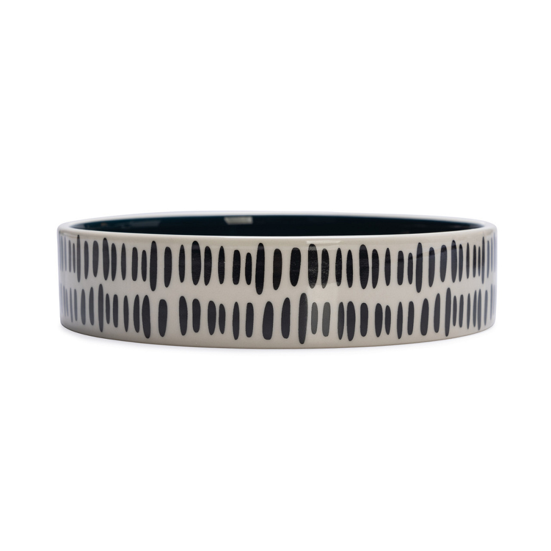 De Jade eetbak is voorzien van een mooi streepjesmotief in zwart/wit. Daarmee is deze drink- of voerbak niet alleen functioneel, maar ook een prachtige trendy toevoeging aan jouw interieur. Nog een bijkomend voordeel is, dat deze voerbak in de vaatwasser kan.