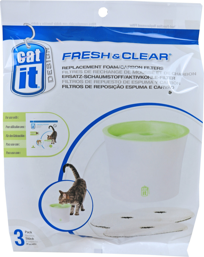 Set van 3 filters met een dubbele werking voor gebruik in Catit drinkfonteinen voor schoon drinkwater.