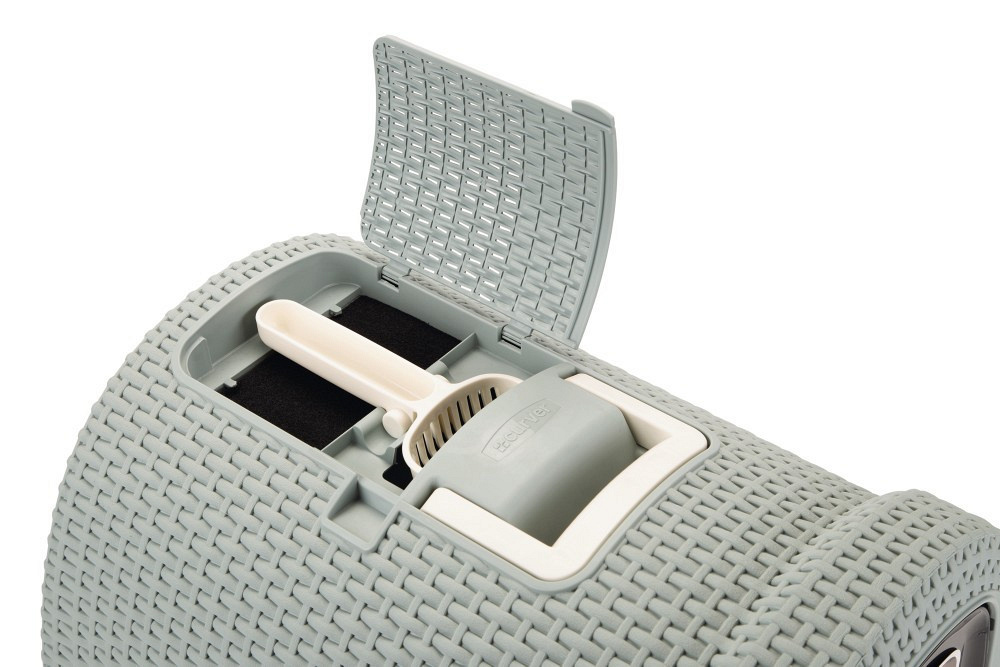 Een prachtig afgewerkte rotan kunststof kattenbak van Curver. Niet alleen een lust voor het oog maar ook zeer gemakkelijk in gebruik.