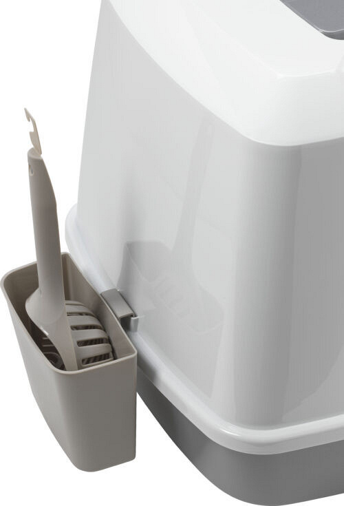 Kattenbakschep en een houder, die te combineren zijn met veel kattenbakken van Moderna.