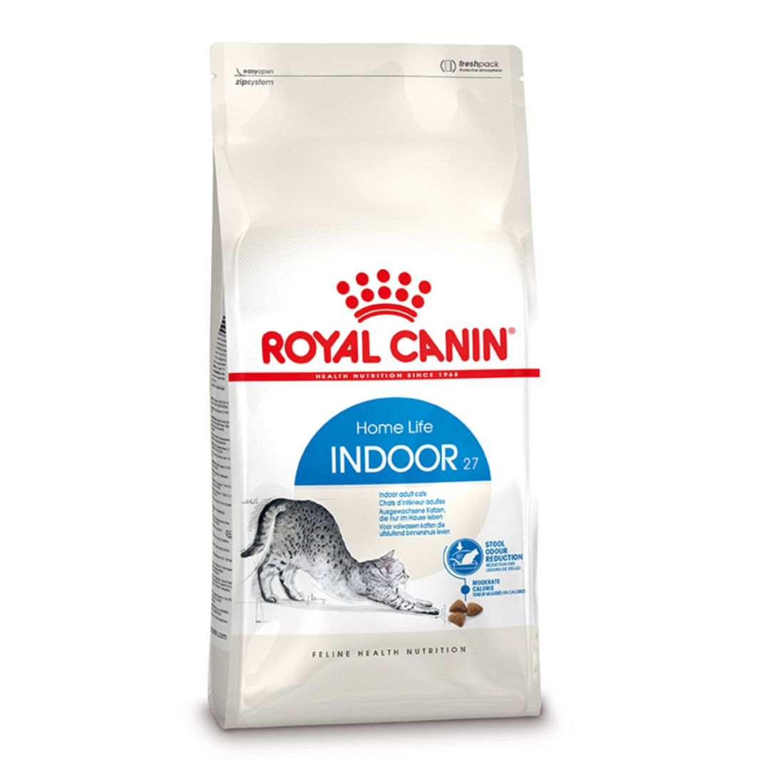 Royal Canin Indoor 27 is een voeding voor katten met een gezond gewicht die alleen binnenshuis leven.