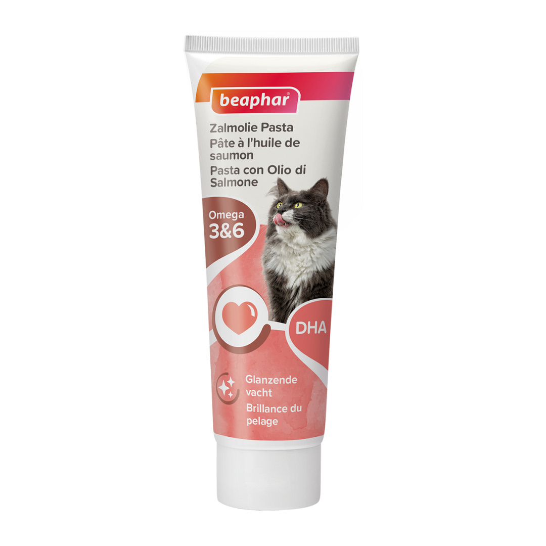 Beaphar zalmoliepasta is een energierijk en smaakvol voedermiddel dat bijdraagt aan een goede gezondheid. Zalmolie en omega 3 en 6 helpen een gezonde en glanzende vacht te ontwikkelen. Deze pasta bevat ook DHA, wat goed is voor hart en bloedvaten.