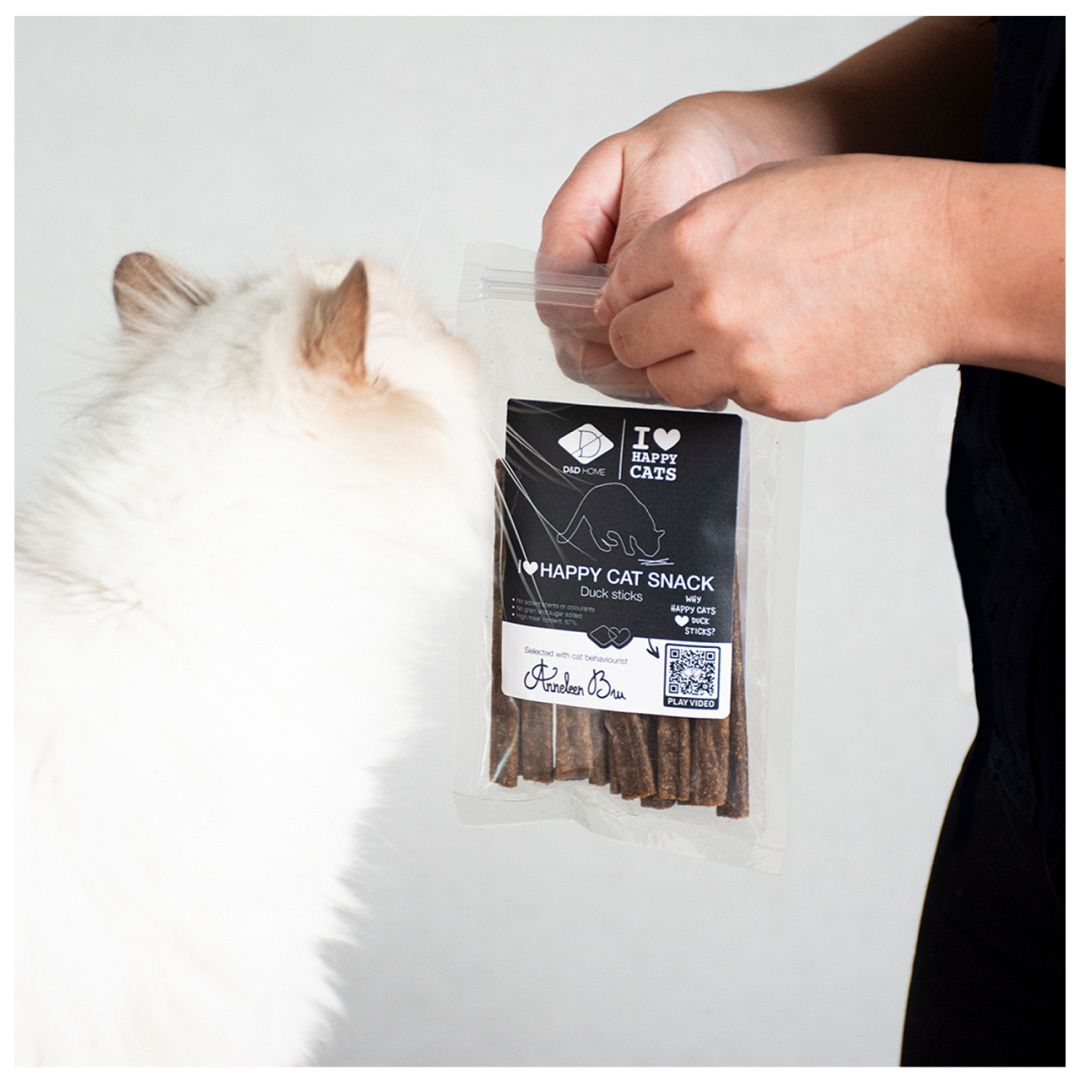 DeD&D I love happy cats rundersticks, ontwikkeld in samenwerking met kattengedragstherapeut Anneleen Bru, bieden volop gelegenheid om te knabbelen en zijn ook een sterke motivator bij het trainen van katten. Je kat regelmatig belonen met deze lekkere snoepjes draagt bij tot haar welzijn, toont dat je haar graag ziet en versterkt de band tussen jullie.