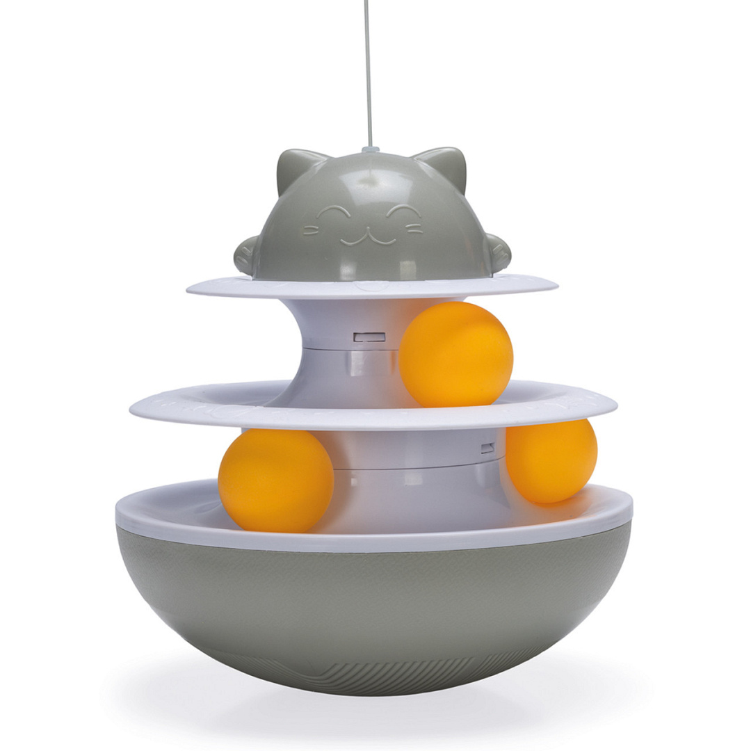 Uitdagend kattenspeeltje met tuimeleffect, speelballetje en veer. Goed voor uren speelplezier.