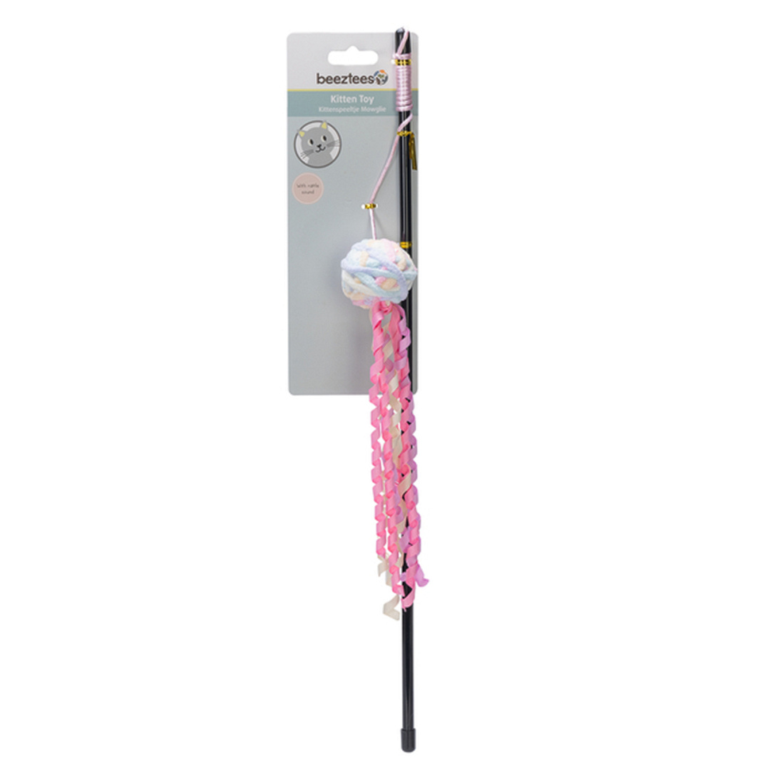 De Beeztees kittenhengel Mowglie is het perfecte kattenspeelgoed om het jachtinstinct van jouw kitten te stimuleren! Aan het uiteinde van de kattenhengel hangt een zachte bolletje van wol, waaraan vrolijke sliertjes zijn bevestigd die jouw kitten zeker zullen uitdagen om te spelen. Jij als baasje kan de kattenhengel bedienen om zo jouw kat te triggeren om met jou te komen spelen. Samen spelen, zal bijdragen aan het versterken van jullie onderlinge band. Het balletje van wol en de sliertjes zorgen voor urenlang speelplezier en helpen je kitten om zijn of haar motoriek te ontwikkelen. Zal hij of zij snel genoeg zijn om het bolletje wol te vangen?
