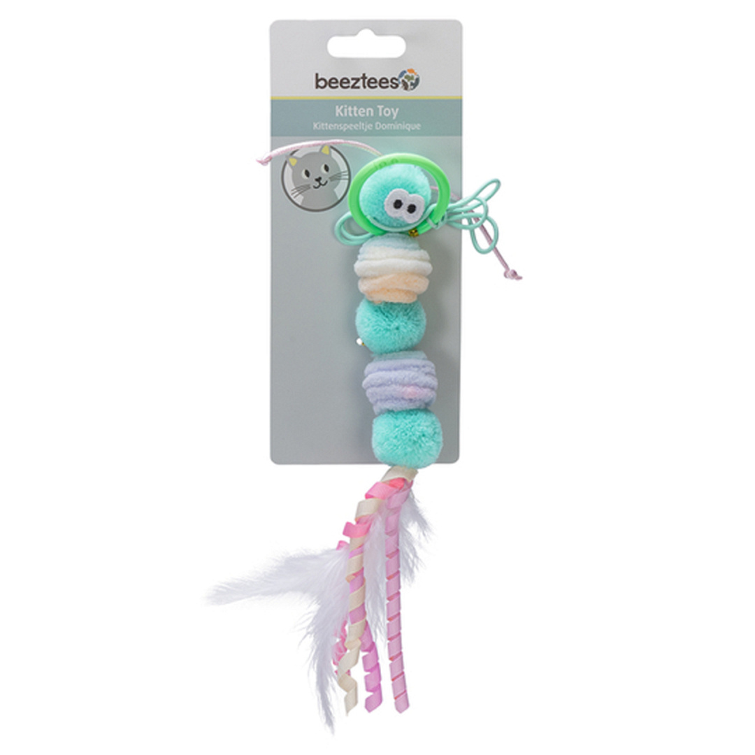 Beeztees Kitten kattenspeeltje Dominique is een vrolijk speeltje voor je kitten, perfect voor het stimuleren van het natuurlijke jachtinstinct. Het kattenspeeltje heeft de vorm van een rups en is gemaakt van polyester. Het elastische touwtje zorgt voor een verende beweging, waardoor het extra spannend wordt voor je kitten om mee te spelen. Het is ook ideaal voor interactief spel, zodat jij samen met je kitten kunt spelen! Aan het uiteinde van de rups zitten een veertje en sliertjes die je kitten uitdagen om te springen, trekken en jagen. Dit maakt het niet alleen heel leuk, maar helpt ook bij de ontwikkeling van de motoriek en coördinatie van je kitten. Kortom, kitten speeltje Dominique is niet alleen een leuk kattenspeeltje, maar ook een leuke manier om je kitten actief en gezond te houden!