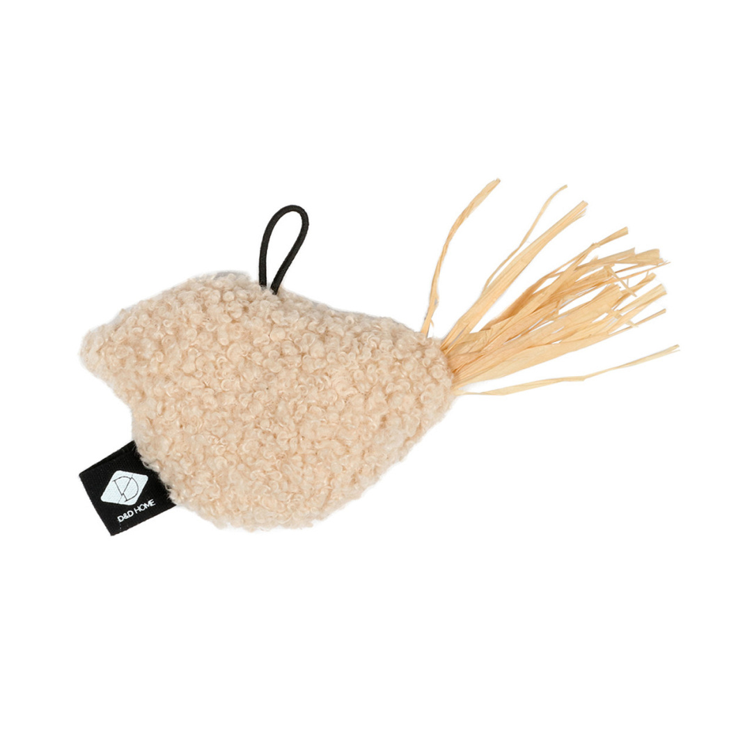 D&D I love happy cats kattenspeeltje vogel Joy is ontworpen in samenwerking met kattengedragstherapeut Anneleen Bru. Joy is een klein kattenspeeltje in de vorm van een vogel. Joy is gemaakt van ecrukleurige teddystof met speelse waterhyacint-accenten.