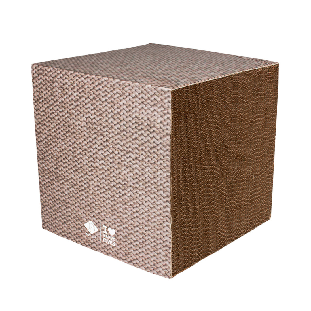 DIt D&D I love happy cats krabblok Freya is ontworpen in samenwerking met kattengedragstherapeut Anneleen Bru. Hij doet ook dienst als een platform waarop je kat kan eten, drinken of rusten. Door zijn kubusvorm en oogstrelende bedrukking past hij makkelijk in elk interieur.