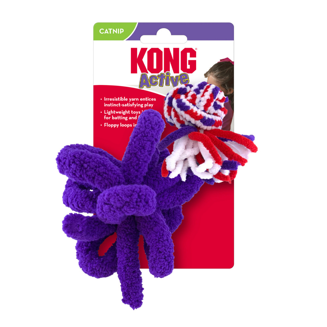 De KONG Active Rope is een extreem zacht en lichtgewicht klosje garen voor katten. Dit speeltje is ontworpen om de natuurlijke jachtinstincten van jouw kat te stimuleren. Ideaal voor worstel- en gooi spelletjes. De multicolor gevewen bal is voorzien van Kong Premium Catnip, wat het speeltje uiteraard nog aantrekkelijker maakt voor jouw kat.
