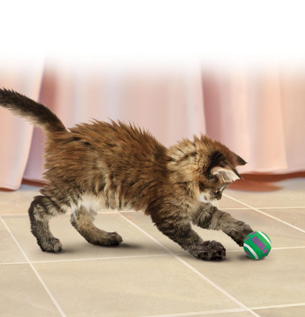 Kong Cat Tennis balls met bells bevordert gezonde lichaamsbeweging en stimuleert de natuurlijke instincten van je kat om te achtervolgen, jagen en vangen. Kong Cat Tennis Balls zijn gemaakt van niet-schurend vilt en zijn onschadelijk voor de tanden bij het spelen. Katten kunnen het belletje niet weerstaan waardoor ook binnenkatten gestimuleerd worden om te bewegen.