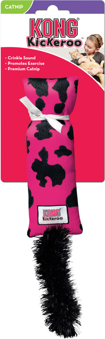 De maat, vorm en het materiaal van de Kickeroo stimuleren worstelen en het schoppen met de achterpoten. De pluizige staart zorgt voor extra enthousiasme en de ruime hoeveelheid Noord-Amerikaans kattenkruid van Kong zorgt voor nog meer speelplezier.