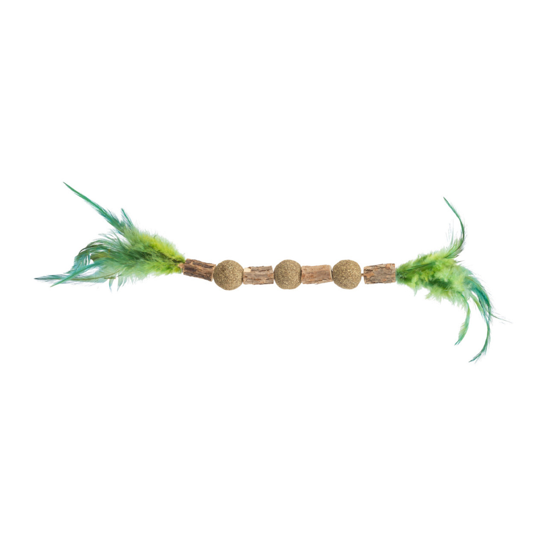 De Trixie Matatabi keten met kattenmuntkogels en veren daagt jouw kat uit er mee te spelen en in te bijten. Daardoor draagt het bij aan de gebitsverzorging.