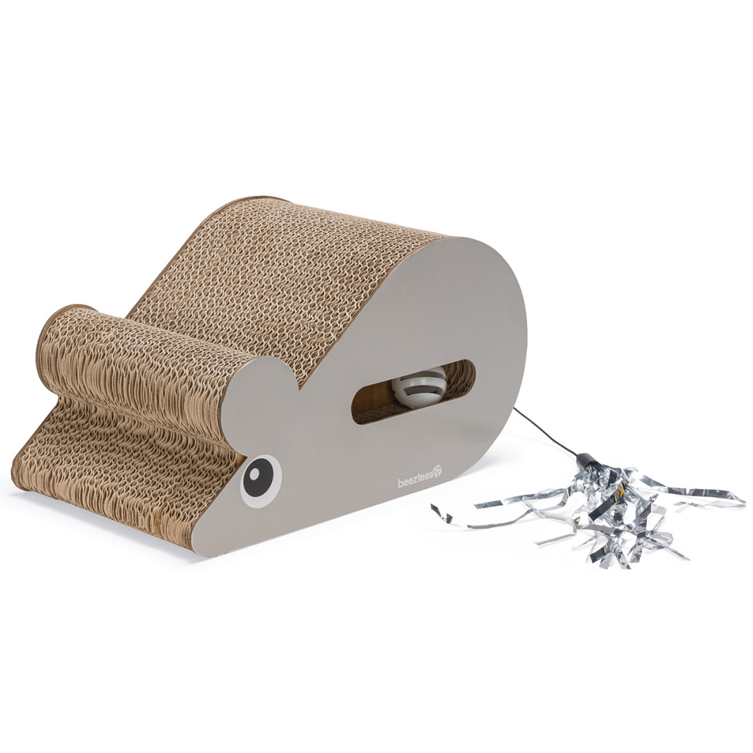De Beeztees kittenkrabplank Muis is gemaakt van stevig golfkarton. Deze krabplank is allesbehalve een grijze muis, want dit speeltje is voorzien van vele extra's. Jouw kitten zal zijn of haar nagels maar al te graag scherpen aan dit krabkarton, wat tevens gebruikt kan worden als speelobject. Aan elke zijde zit een opening met daarin een speelballetje met belletje, dat jouw kitten maar al te graag te pakken wil krijgen. De staart van de muis bestaat uit een zilverkleurig flosje aan elastiek, voor extra speelplezier.