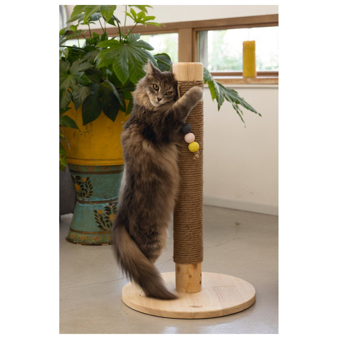 Krabpaal bedekt met sisal en voorzien van drie gekleurde balletjes voor extra speelplezier. Afm. Ø 40 x 70 cm.