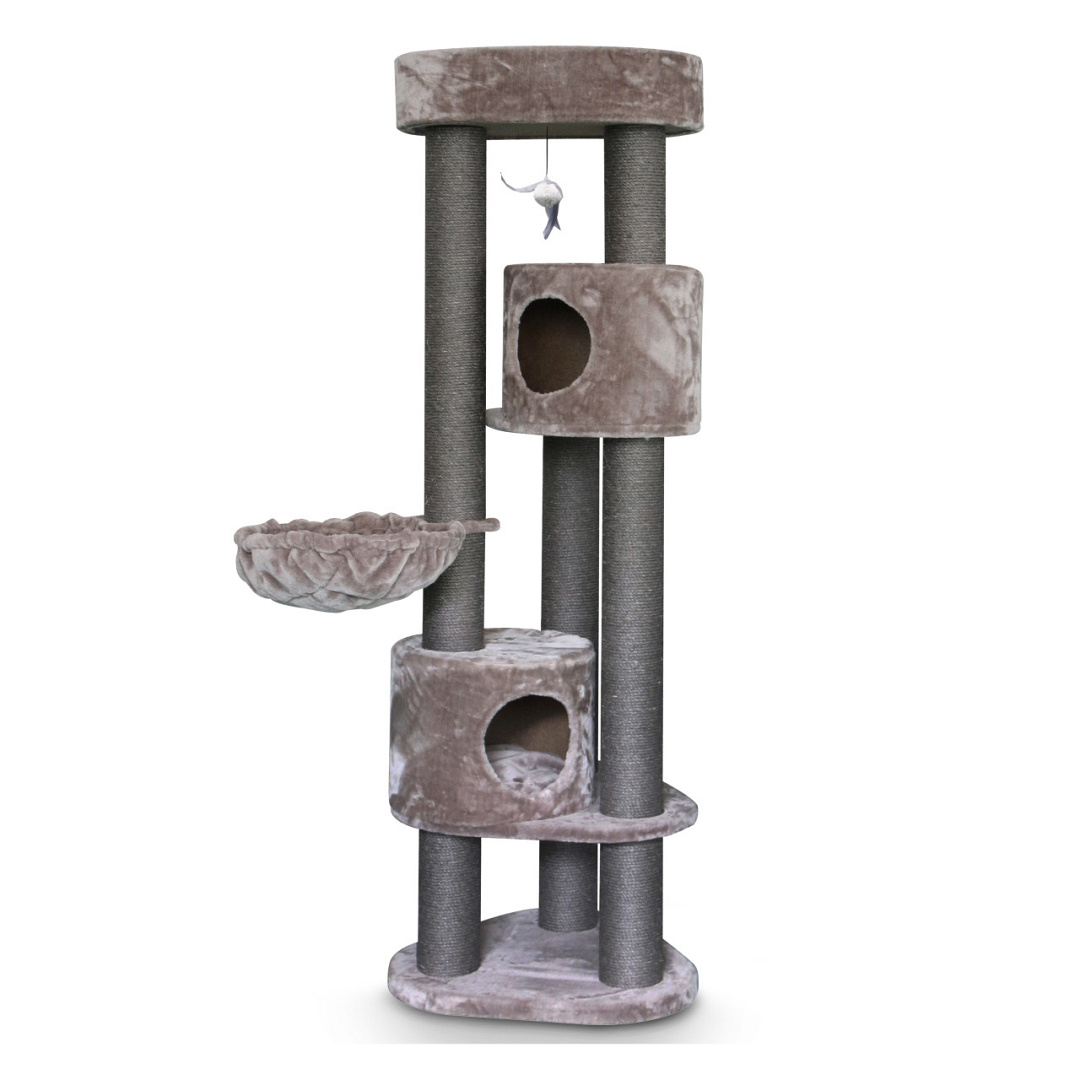 Stabiel krabmeubel met 2 slaapruimtes, hangmat en superzacht divan. Extra hoog en ruimtebesparend. Afm. 59 x 56 x 180 cm.
