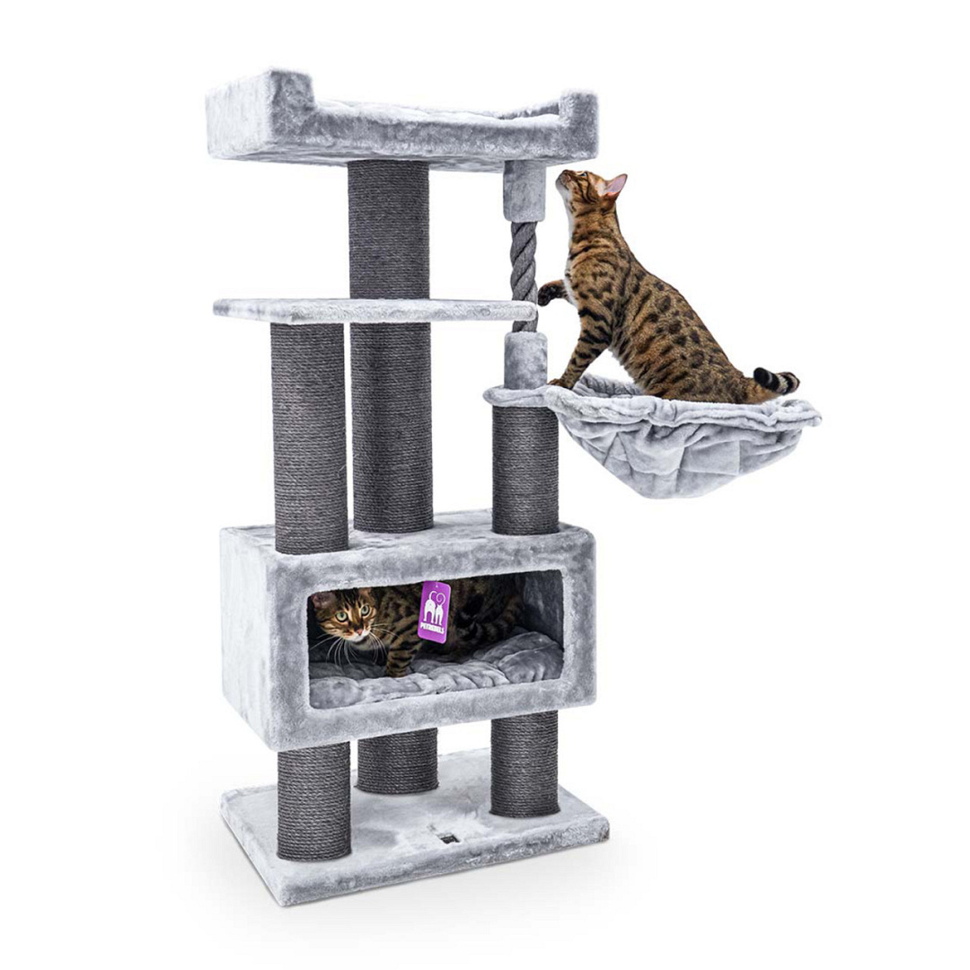 Een robuust en luxe krabmeubel met extra stabiele bodemplaat, sterk sisal en royale ligplekken van extra zacht pluche. Afm. 58 x 45 x 131 cm.