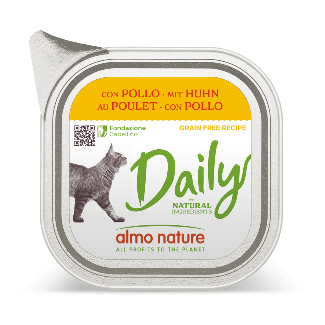 De Almo Nature Daily kattenvoeding is graanvrij en gemaakt met rood vlees, wit vlees, vis, ei , groenten en rijst, geschikt voor dierlijke consumptie. Het hele assortiment is vrij van kunstmatige kleurstoffen en conserveermiddelen. Daily natvoer is daarom uitermate geschikt voor voedselgevoelige katten.
