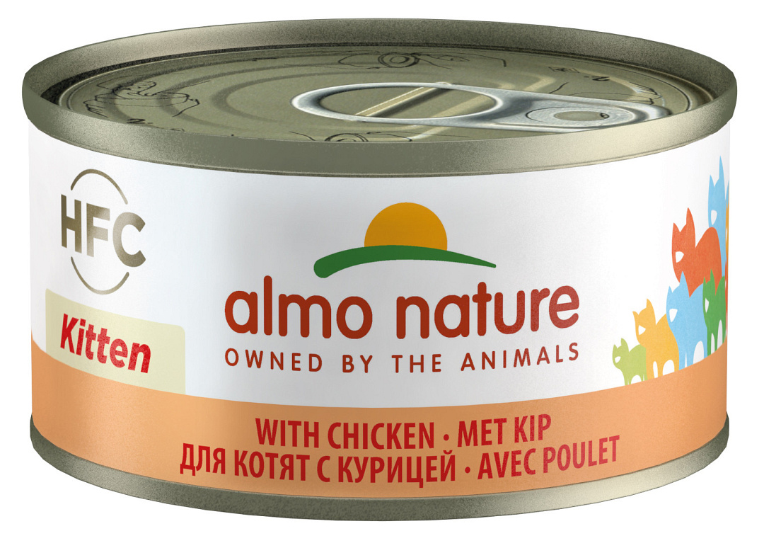 Almo Nature kattenvoer HFC Kitten kip is speciaal ontwikkeld voor kittens en bevat daarom een aangepast gehalte aan eiwitten, vetten, vitaminen en mineralen. De groei van jouw kitten is een essentiële fase in zijn leven en heeft daarom de juiste voedingsstoffen nodig ter ondersteuning van een gezonde groei en ontwikkeling. Bovendien bevordert het natvoer van Almo Nature de spijsvertering en ondersteunt de natuurlijke weerstand van jouw kitten.
