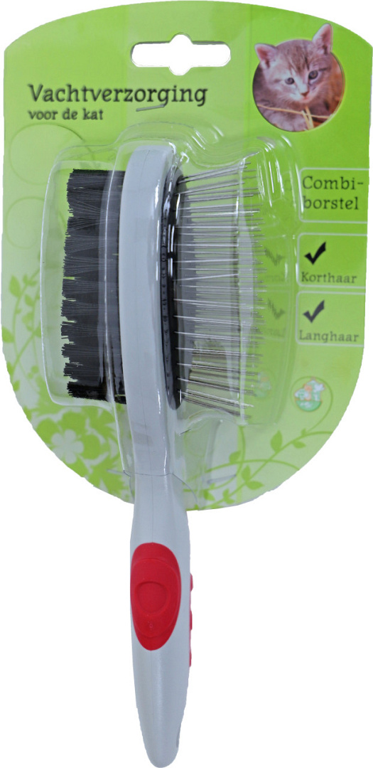 De borstel combi 2 zijdig heeft een hoogwaardige afwerking met softgrip handvat. Geschikt voor katten met lang of kort haar.