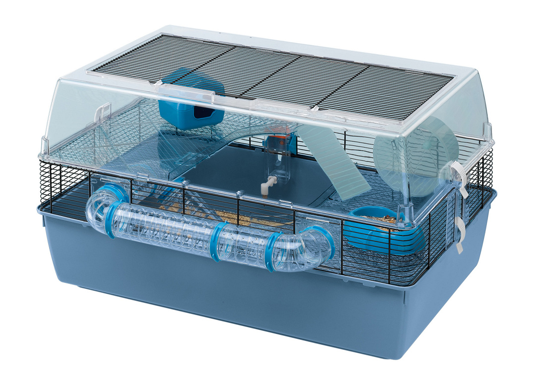 De Ferplast hamsterkooi Duna Fun L is een royale hamsterkooi, voorzien van een grote bodem. Deze ruime versie bestaat uit drie niveaus die alle comfort bevatten. Inclusief essentiële accessoires om ervoor te zorgen dat je kleine vriend zich vermaakt, waaronder een nest, ladders, een drinkfles, een wiel en transparante buizen.