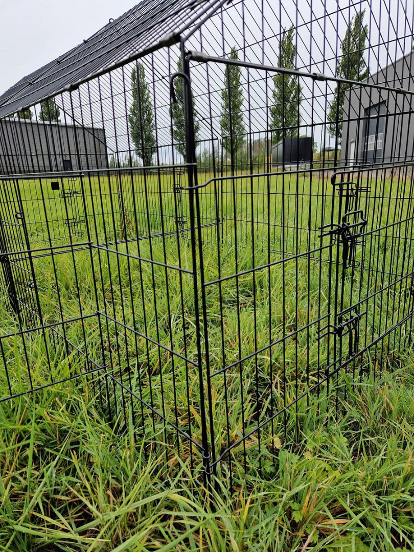 Deze stevige ren heeft een afgesloten bovenkant, waardoor je dieren beschermd zijn tegen roofdieren zoals roofvogels, katten en vossen. De ren is voorzien van wel zes deurtjes, hierdoor is deze aan de binnenkant makkelijk te bereiken. Verder bestaat deren uit losse panelen die eenvoudig aan elkaar bevestigd kunnen worden met de bijgeleverde pinnen. Wil je de ren ergens anders plaatsen? Door de losse panelen gaat dit erg makkelijk. Gebruik je de ren niet? Dan kan je de losse panelen makkelijk opbergen.
