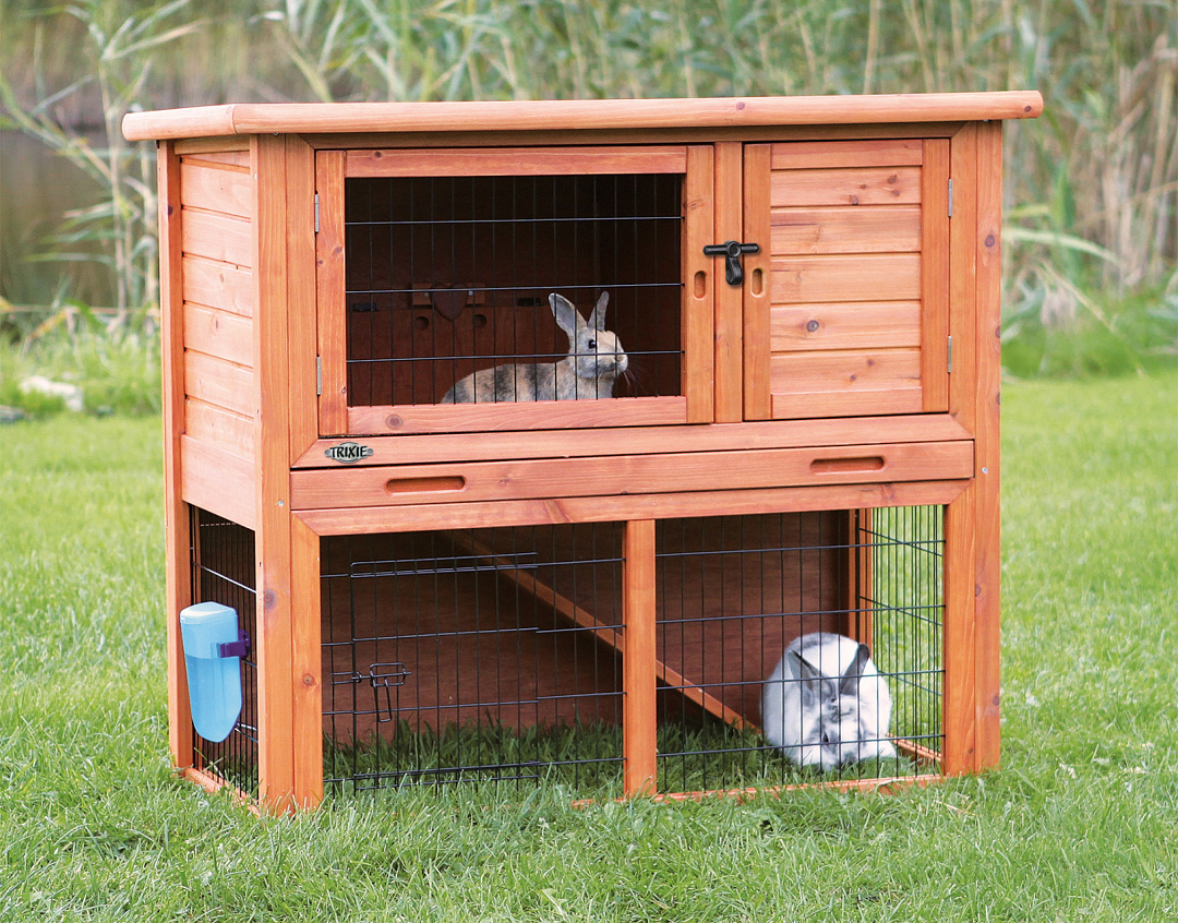 Het TRIXIE Natura kleindierhok met ren voor konijnen en cavia's is gemaakt van gebeitst grenenhout. Het hok is voorzien van een gepoedercoat metalen traliewerk en heeft een openklapbaar bitumen dak. Het hok bestaat uit twee verdiepingen. Op de bovenste verdieping zit een open loopgedeelte en een beschut nachthokje waar jouw konijn of cavia kan schuilen.