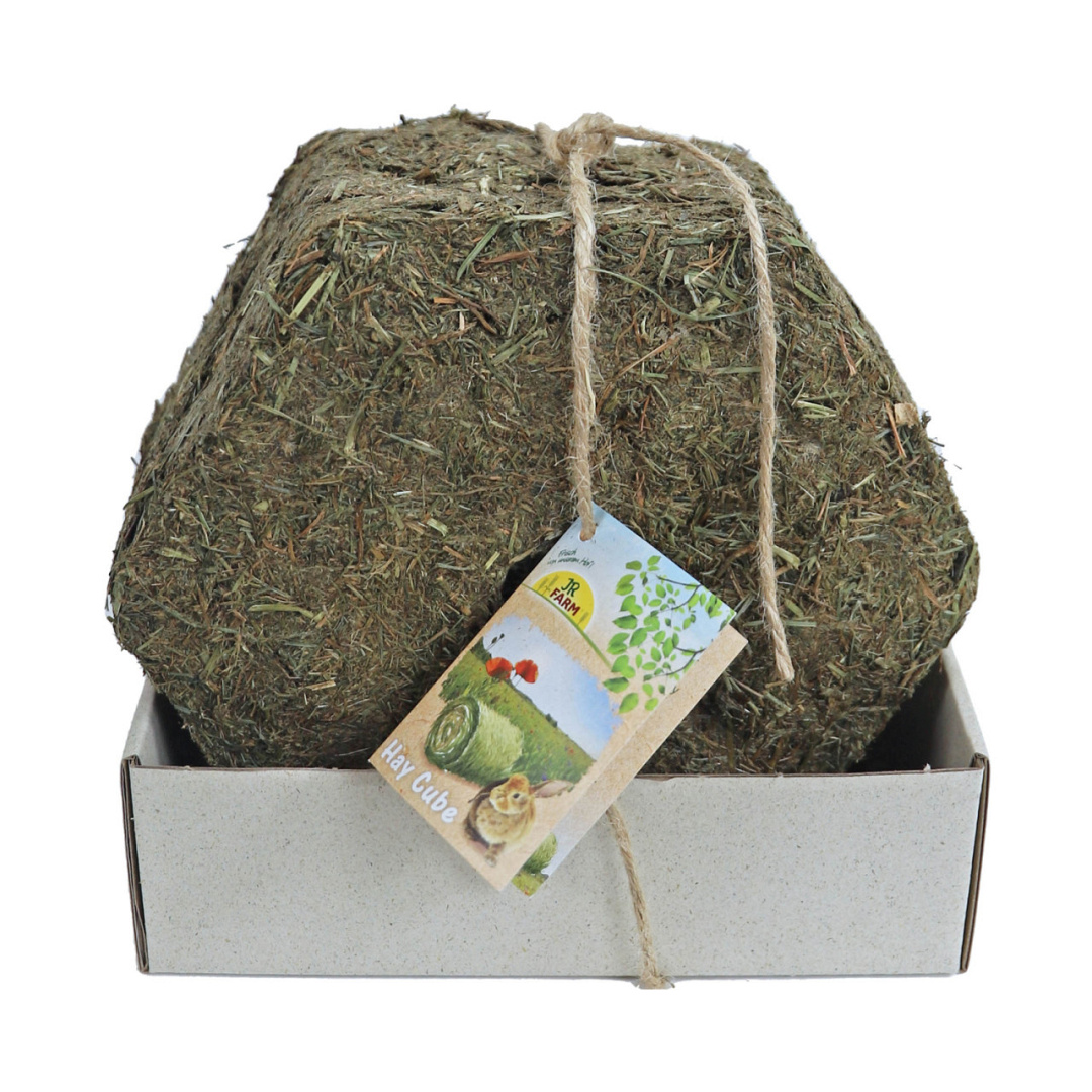 Hooiblok met extra geurende kruiden en 24% puur gras. Mogelijkheid om op te hangen en volledig eetbaar en verteerbaar.