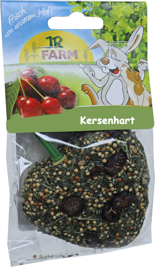 De JR Farm kersenhart met milde gedroogde zoete kersen is een smakelijke verrassing voor elk knaagdier. Bevordert het afslijten van de tanden en houdt het dier lang bezig!