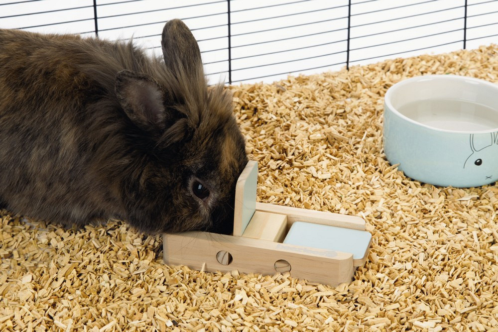 De Beeztees braingame Dorix is een houten verstop- en traktatiespel om het natuurlijke gedrag van jouw knaagdier of konijn aan te moedigen.