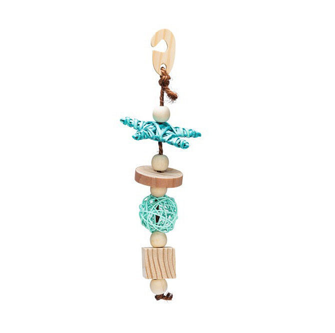Speelgoed gemaakt van hout met sisal touw. Eenvoudig op te hangen in de kooi of ren d.m.v. de ophanghaak.