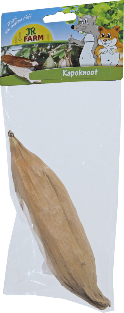 De JR Farm kapoknoot bevat een zacht nestmateriaal dat het dier zelf kan verzamelen. Kapok is verwant met de katoenplant, zorgt voor een aangenaam klimaat en transporteert het vocht naar buiten.