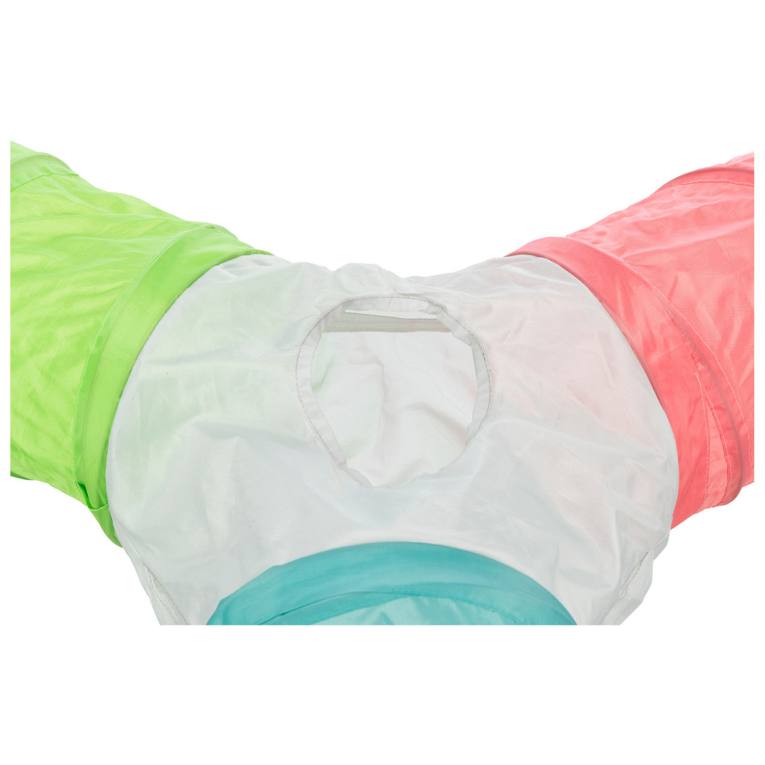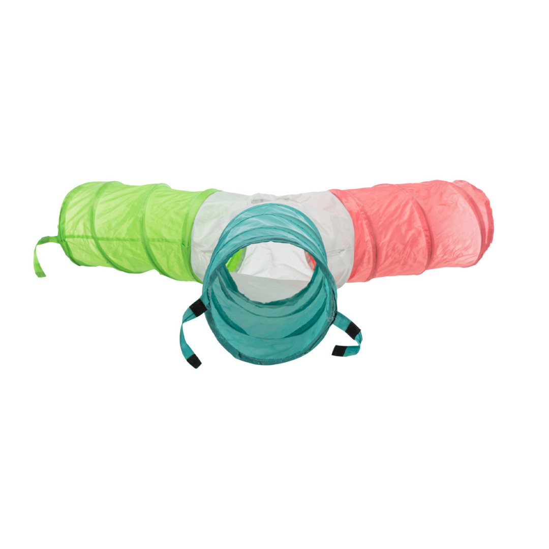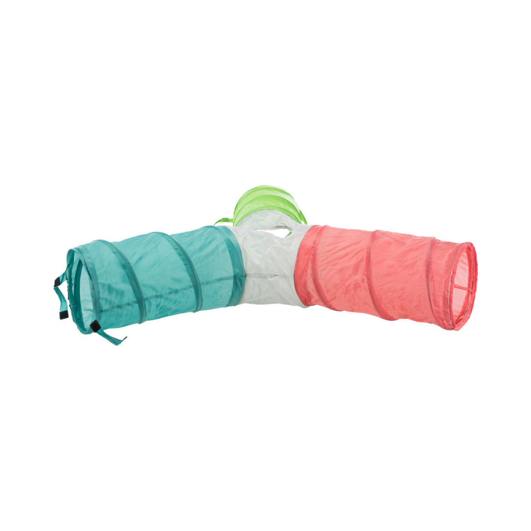 Trixie speeltunnel Dwergkonijn 4 uitgangen is een vormvaste, nylon speeltunnel met drie gangen en vier openingen. Konijnen en cavia's verstoppen zich graag, en dat gaat prima in deze leuke tunnel. Uit te breiden met meerdere tunnels.
