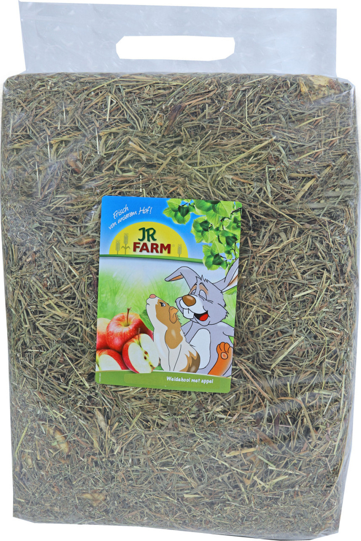 De JR Farm weidehooi met appel bestaat uit behoedzaam gedroogde grassen en kruiden met zeer hoog bladgehalte, verrijkt met gezonde appels. Het premiumhooi voor de gourmets onder de knaagdieren!