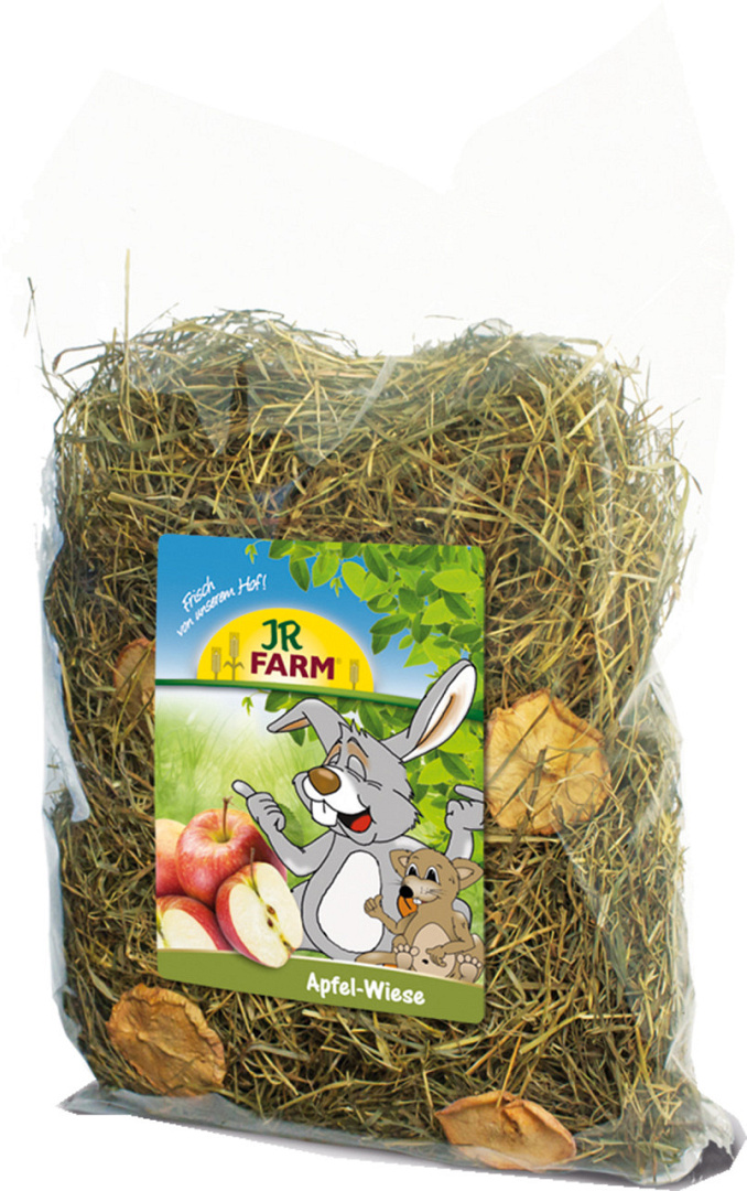 De JR Farm weidehooi met appel bestaat uit behoedzaam gedroogde grassen en kruiden met zeer hoog bladgehalte, verrijkt met gezonde appels. Het premiumhooi voor de fijnproevers onder de knaagdieren!
