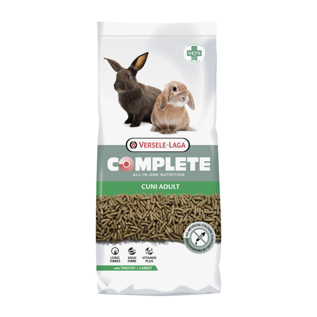 Versele-Laga Complete Cuni zijn vezelrijke geëxtrudeerde brokjes voor volwassen (dwerg)konijnen. All-in-one, dus geen selectief eetgedrag. Bevat lange vezels, o.a. timothyhooi, optimaal voor de tanden. Verrijkt met wortelen en kruiden voor een goede opname en vertering.