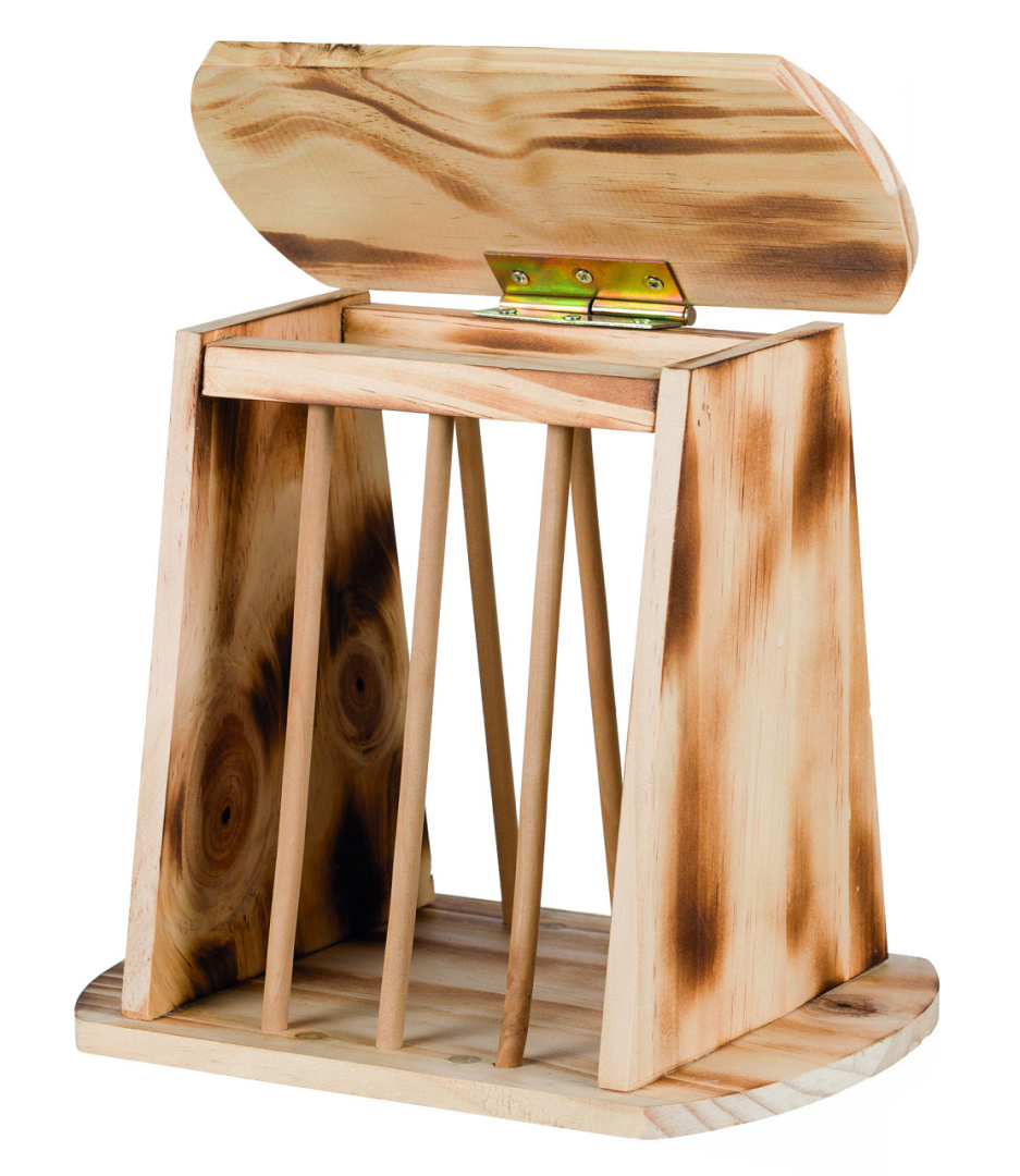 De Trixie hooiruif om neer te zetten is gemaakt van gevlamd hout en is te vullen met hooi, gras enz. Een hooiruif voorkomt verontreiniging van het voer door ontlasting en urine.