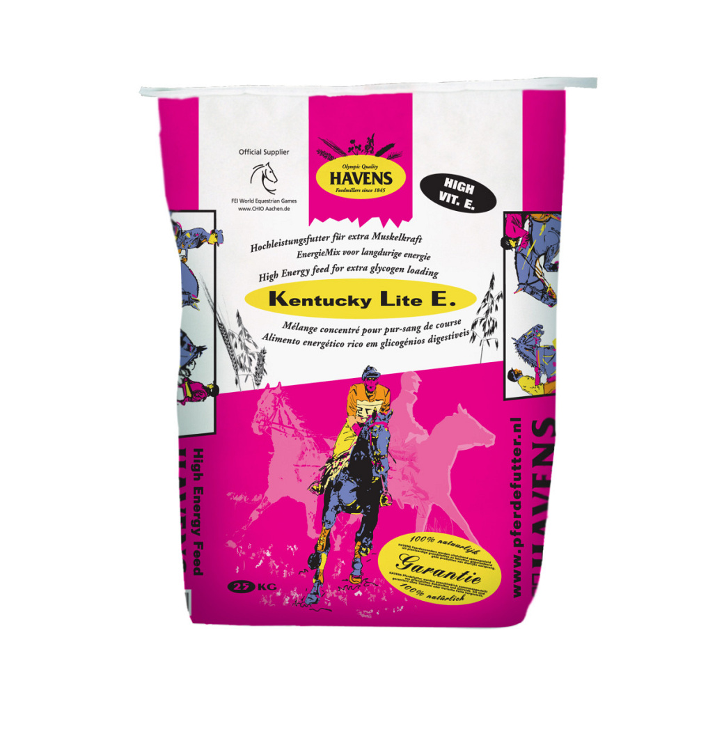 Kentucky Lite E is rijk aan koolhydraten en lichtverteerbaar zetmeel en bevat een hoge vitamine gehalte. Met verhoogd Vitamine E.-gehalte van 400 mg/kg (de "spier-vitamine"), in combinatie met Selenium ter ondersteuning van de spierfunctie. Het product is speciaal uitgebalanceerd voor paarden in sport/inspanning en bevat een laag eiwitgehalte en extra lijnzaadolie.