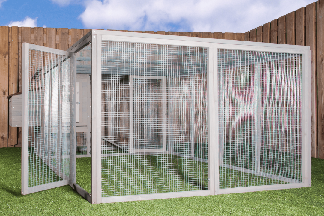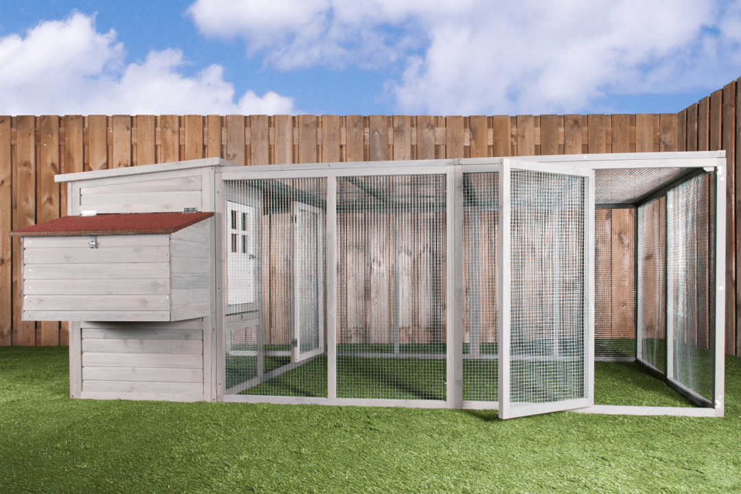 Dierenverblijf Marie Jeanne is een praktisch en stijlvol buitenhok voor kippen en konijnen. Het verblijf bestaat uit een ruim nachthok en een grote losse ren.