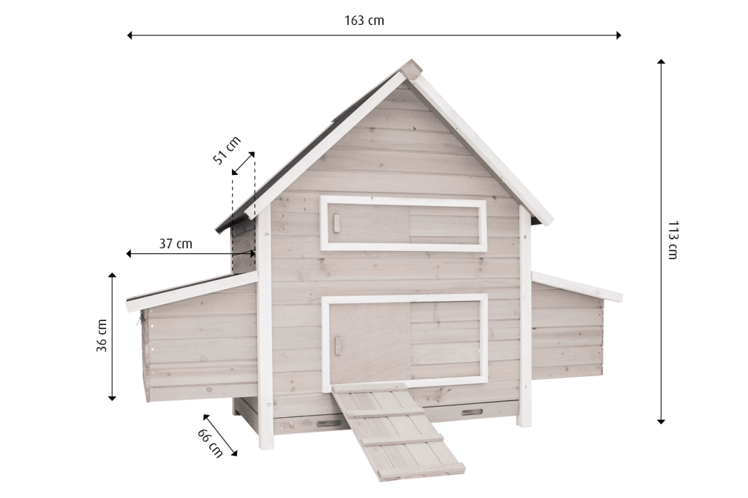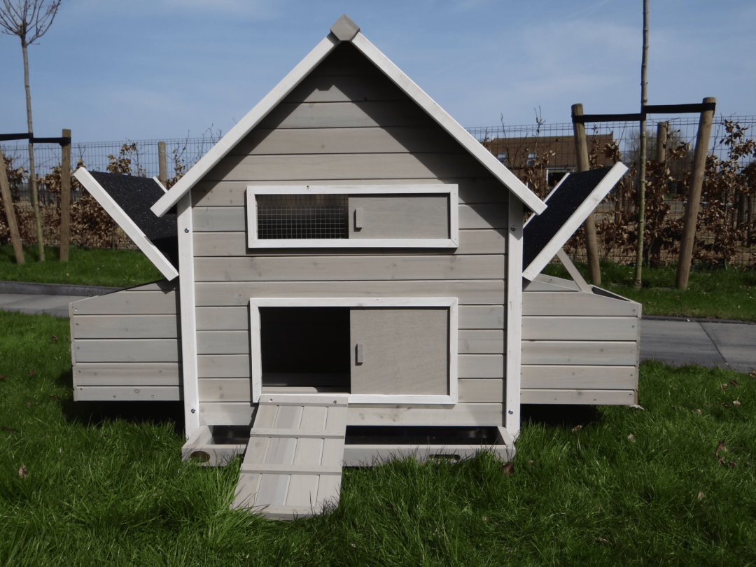 Het Kippenhok Anna is een stijlvol en stevig verblijf dat plaats biedt aan ongeveer 4 kippen. Het verblijf is aan beide zijden voorzien van een ruim legnest.