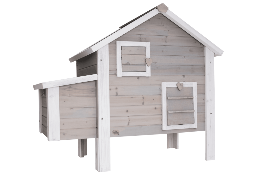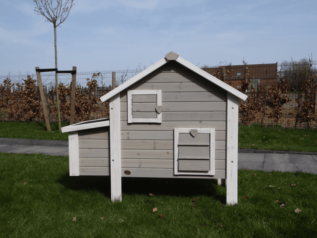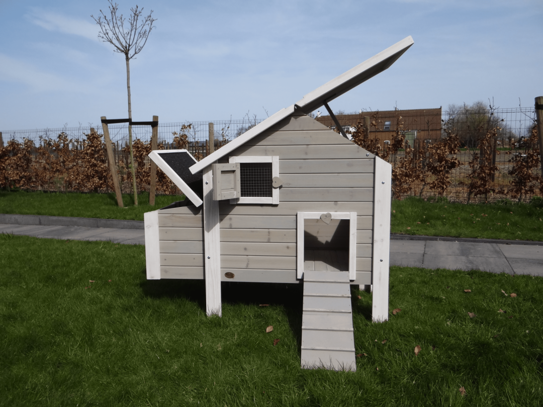 Het Nachthok Liza is een stijlvol en stevig verblijf dat plaats biedt aan ongeveer 4 kippen en is voorzien van een ruim legnest.