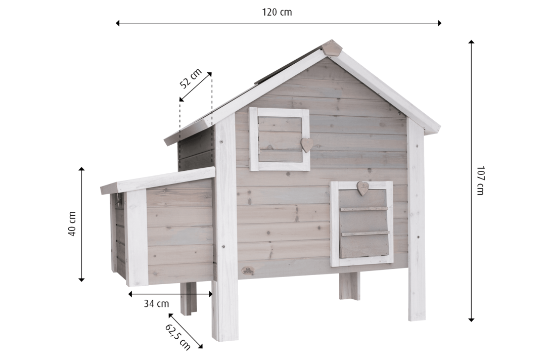 Het Nachthok Liza is een praktisch en stijlvol kippenhok, geschikt voor circa vier kippen. Het hok is voorzien van twee stevige zitstokken, zodat de kippen comfortabel kunnen rusten. Aan de zijkant bevindt zich een aangebouwd legnest waarvan het dak eenvoudig te openen is, zodat de eieren gemakkelijk bereikbaar zijn. Het nachthok is gebruiksvriendelijk dankzij het openklapbare dak, waardoor schoonmaken en onderhoud snel en eenvoudig gaan. Aan de voorzijde is het hok voorzien van een afsluitbare deur en een handige loopplank, die zorgen voor een goede bescherming tegen ongewenste bezoekers. Het hok is gemaakt van hout en past met zijn fraaie uitstraling mooi in iedere tuin.