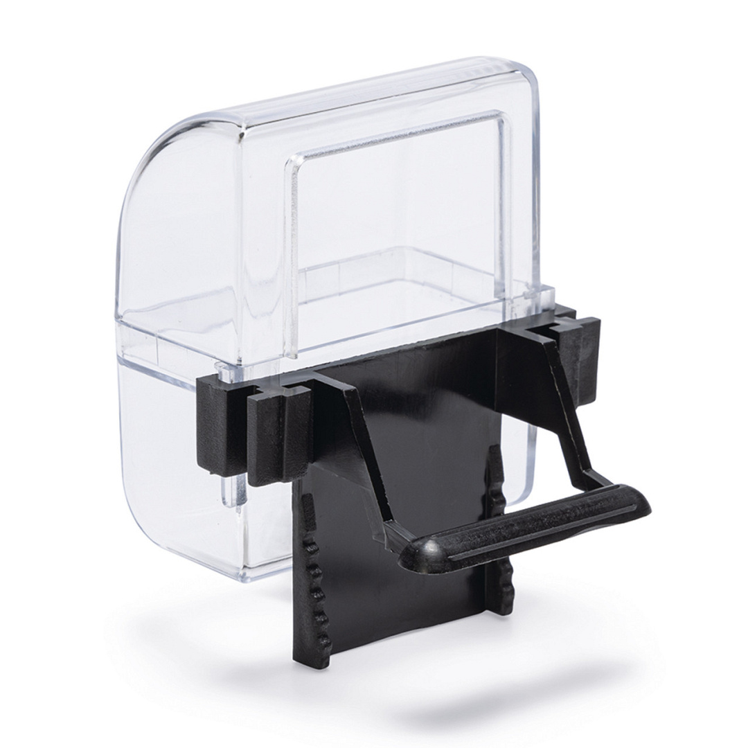 Transparante voer- en drinkbak. Gemakkelijk aan de vogelkooi te bevestigen.